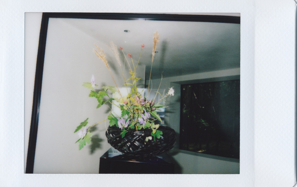 Upon entering Mame Kurogouchi Aoyama guests are greeted by autumn flowers arranged in flower basket by Chikuunsai Tanabe II.