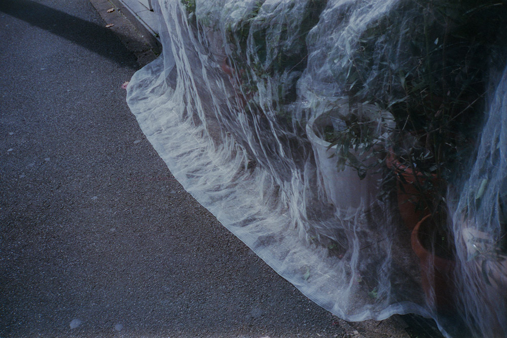 When Kurogouchi saw an orange tree covered in a bird net in Odawara, the memory of sleeping in a mosquito net - or kaya suddenly came back to her. In a trip to Arita, Saga, from the previous year, she was offered a chance to sleep in an antique indigo-die mosquito net hanged from the ceiling. The world outside was blurred, seemingly more beautiful and gentler.