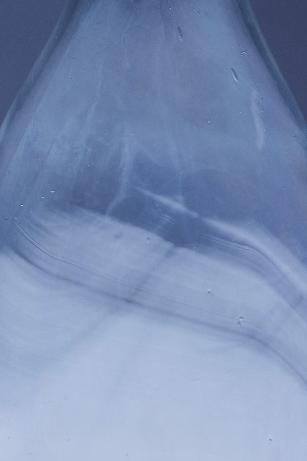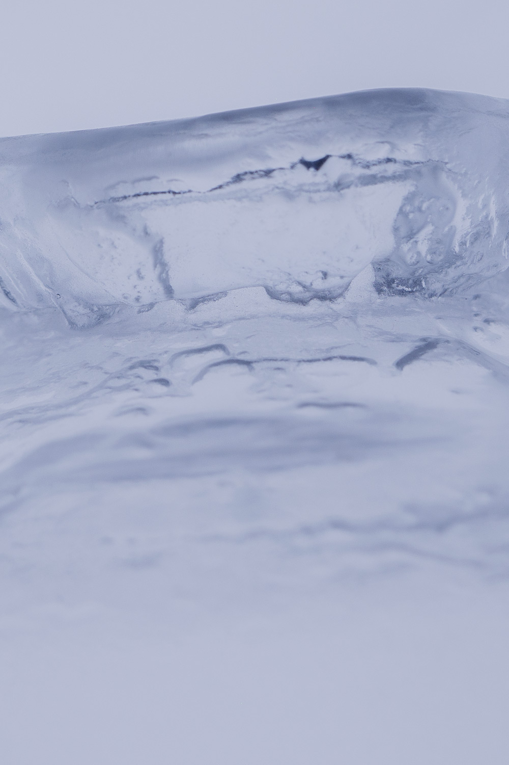 細かく入った気泡は雪片、硝子の流れは凍った水たまりの様にもみえる。水の景色をガラスにのせたいと言っていた。朝の光の中で眺めると森に滴る春の雪解け水にも見えて、そんな様々な景色が見えるというのはなんて素敵なんだろうかと思う。
